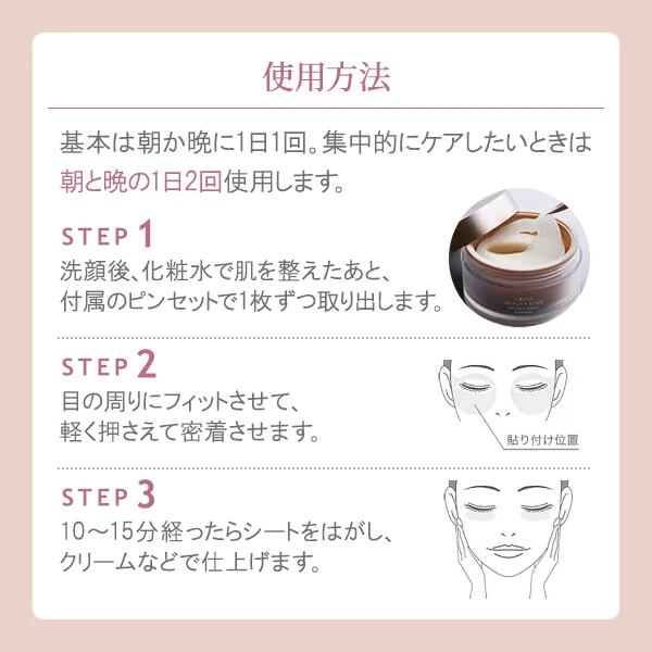 独自形状シートで、まぶた・目尻・目の下・頬の三角ゾーンまでしっかり覆い、目まわり全体を徹底ケアできる目元用シートマスクです。